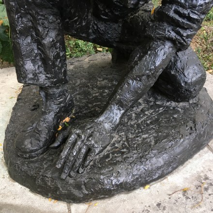 It was a bright morning in London and I was walking along London Wall when an iron man caught my eye: folded over a small patch of soil- it too cast out of iron- and trapped in the shadow of concrete buildings, the gardener was kneeling, perpetually caught in the act of covering over a seed just laid into the ground.
