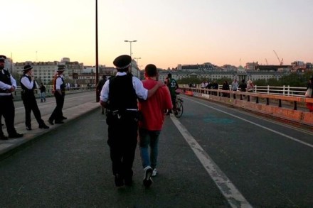 A disgruntled young man, one of those people so often unseen, was walking up the bridge complaining aggressively about the chalk flowers and the peaceful uprising to a tired policewoman clad in bright yellow, who in turn replied with her concerns about austerity, and how profoundly it had depleted the city’s resources. As they walked along the bridge side by side, their conversation quickly turned to the universal right to speak up and be heard, touching on the fundamental principles of civilian coexistence, and the inner workings of a system that is failing most.